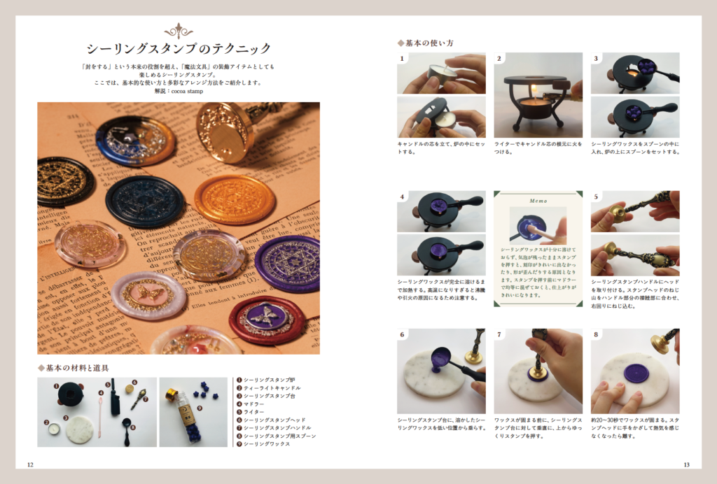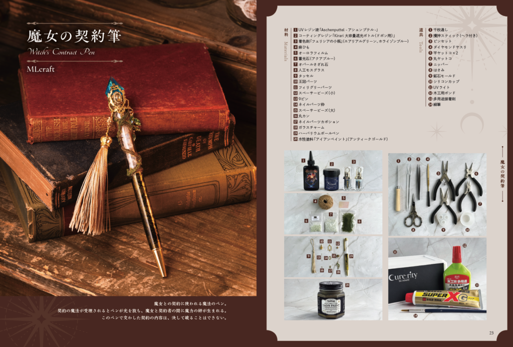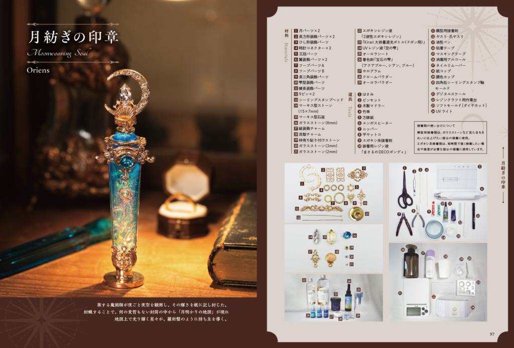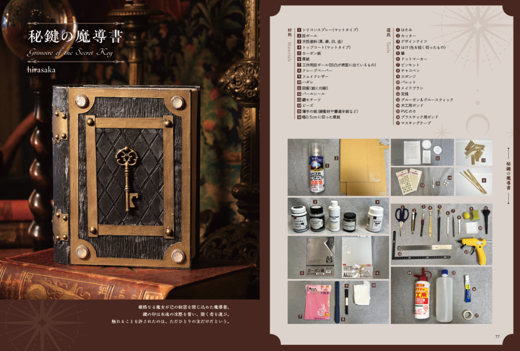 魔導書、光る魔法のペン、シーリングスタンプ、羽ペン、蒐集箱、書簡風巻物などなど……全部で19点もの「魔法使いたちの文具」を掲載。 材料や道具・作り方など、ゼロから生み出す技法を惜しみなく公開した8名の人気“魔法作家”たちによる唯一無二のクラフト本です。 魔法の世界感を存分に楽しめる美しいビジュアルページも必見。見て楽しめて、作って楽しめる1冊です。